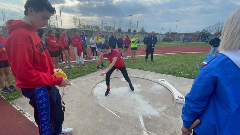 Prima giornata del CDS ragazze a calenzano all’insegna di un clima ventoso e nuvoloso. Schieriamo la squadra  con le new entry di Maria, Ilenia e Ginevra V. che vanno ad affiancare Dafne, Giulia, Ginevra P., Morena ed Eleonora. La gara di triathlon si apre con il getto del peso che vede l’ottimo piazzamento di Giulia e Ilenia che si piazzano quinta e sesta, gara sfortunata per Dafne che fa un secondo lancio nullo di poco sotto gli 8 metri e comunque chiude undicesima. Seguono poi Morena e le altre che migliorano tutte il proprio personale.